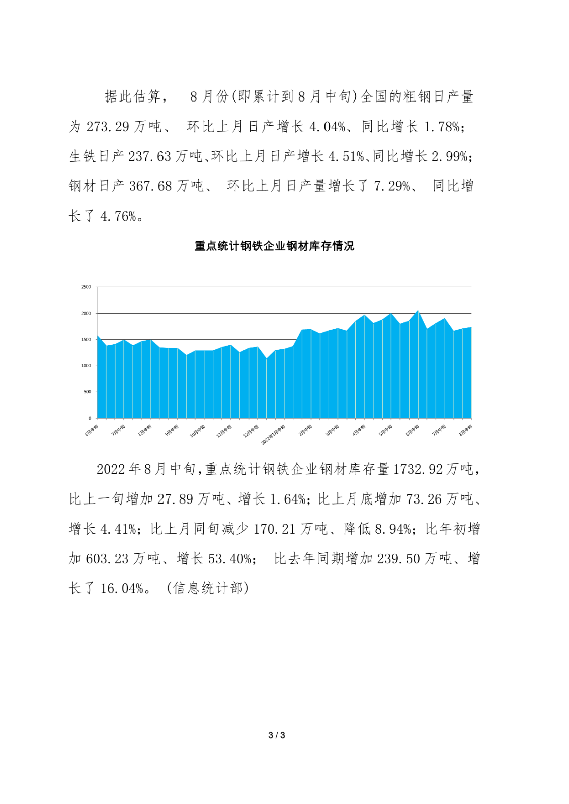 據(jù)中鋼協(xié)數(shù)據(jù)顯示,2022年8月中旬,重點(diǎn)鋼企粗鋼日均產(chǎn)量199.63萬噸,環(huán)比增長(zhǎng)2.72%;鋼材庫存量1732.92萬噸,比上一旬增加27.89萬噸,增長(zhǎng)1.64%。